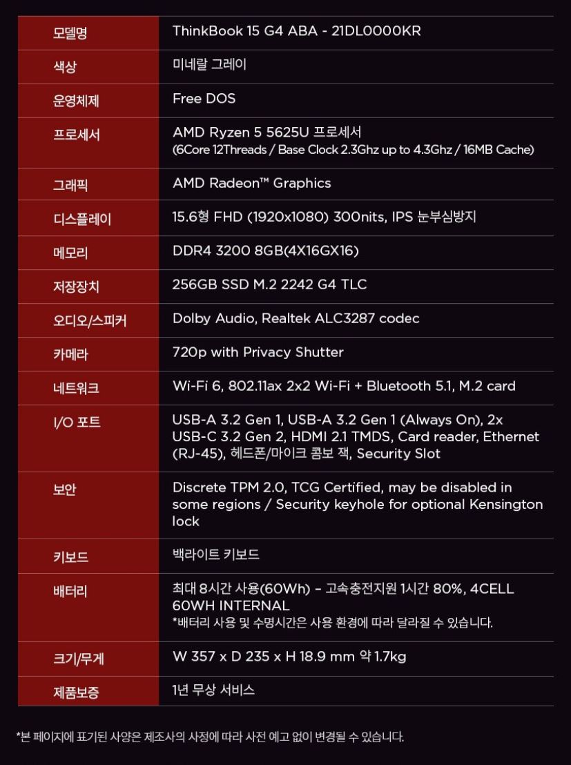 가성비 노트북 레노버 씽크북 2022 ThinkBook 15 G4 ABA-21DL0000KR