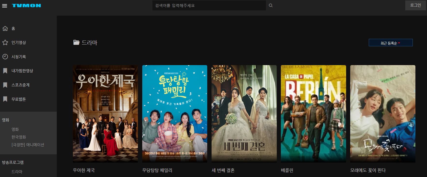 티비몬에서 제공하는 영상 리스트