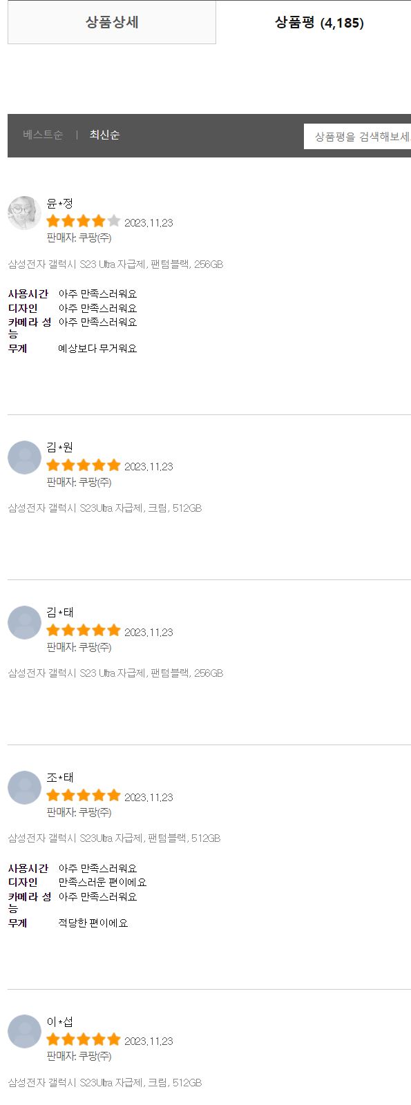 | 삼성전자 갤럭시 S23 Ultra 사양 기능 크기 무게 가격정보 상품평 보러가기 (0) | 2023.11.24 |