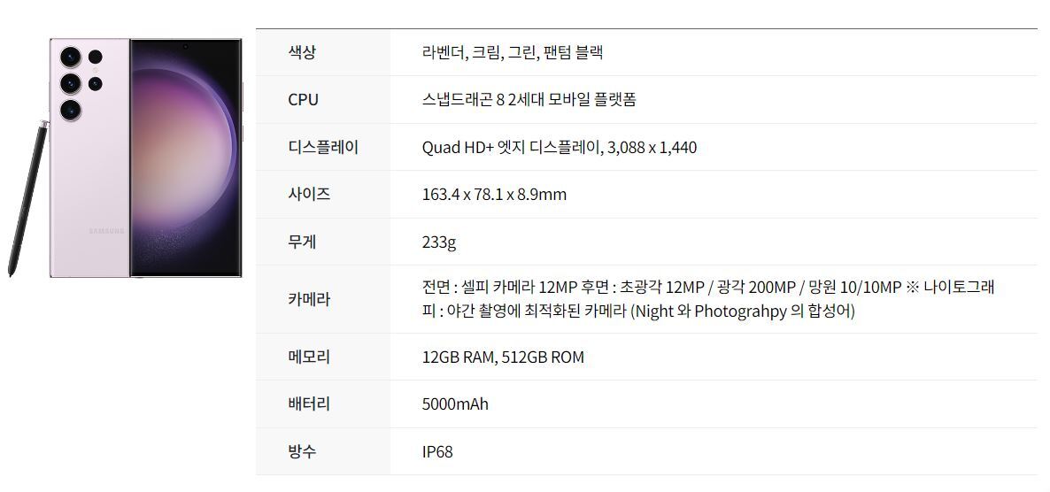 삼성전자 갤럭시 S23 Ultra 주요 특징과 세부 사항 가격정보 상품평 보러가기