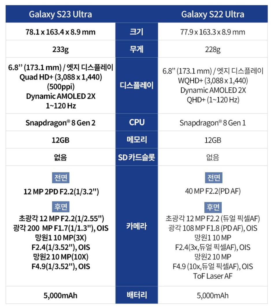 갤럭시 s23 울트라 vs 갤럭시 s22 울트라 비교