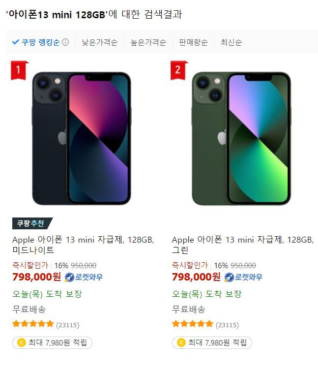 | 아이폰13 mini 128GB 할인율 가장 높은 제품 배터리 지속시간 (0) | 2023.11.23 |