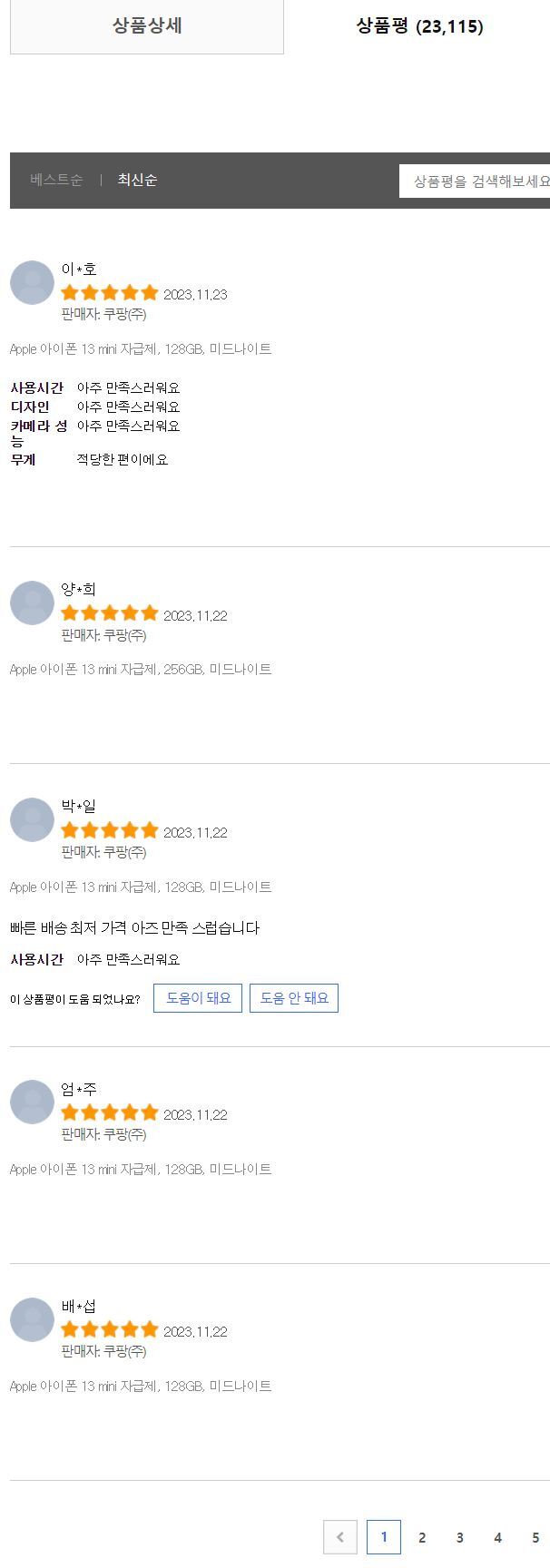 상품평을 최신순으로 보니 어제일자로 상품평이 남아 있습니다.