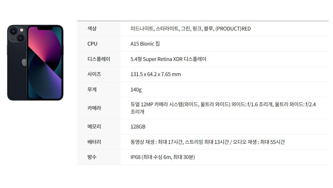 Apple 아이폰 13 mini 자급제 구매정보 아이폰13 미니 가격 크기 정보