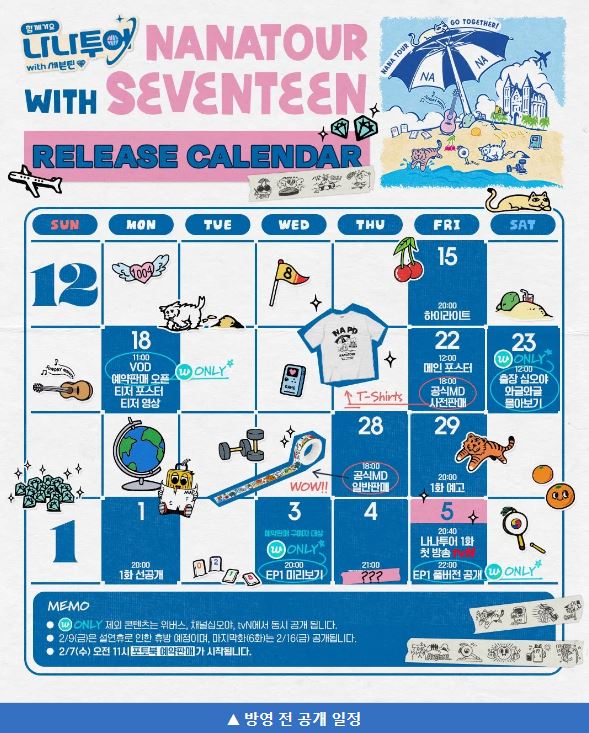TVN 금요일 예능 함께가요 나나투어 with 세븐틴 무료 다시보기 보러가기 예약 숙소 식당 SNS 인스타그램 시청률 재방송 촬영지 티빙 나영석