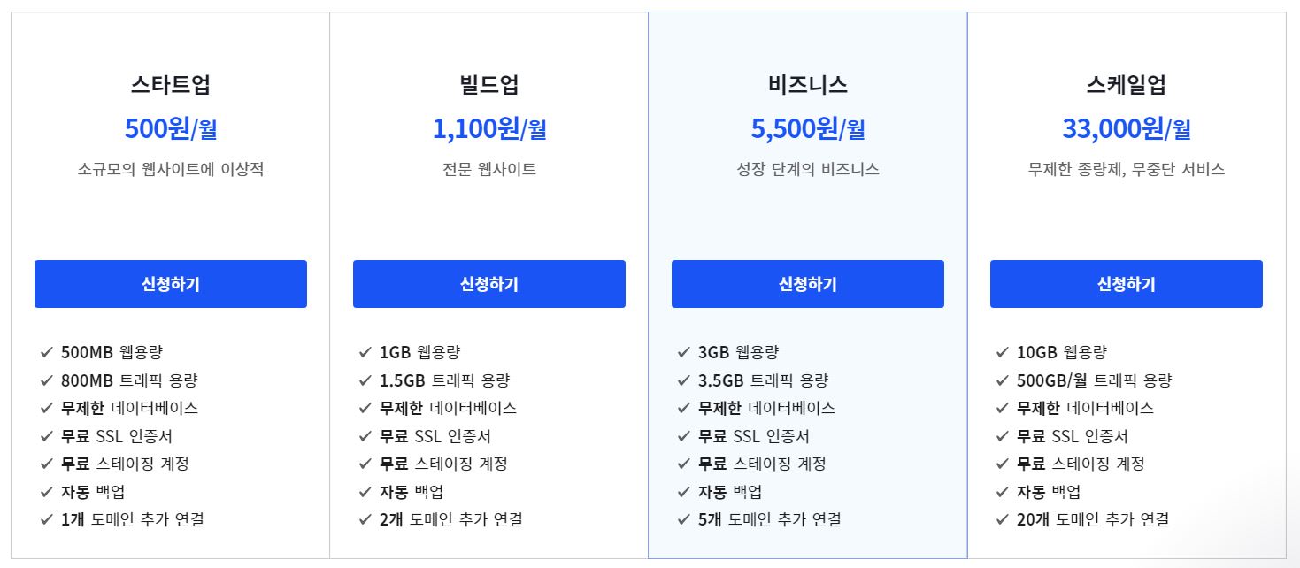 워드프레스를 부담없이 사용하려는 초보자라면 일단은 월500원으로 시작해 웹용량 사용량이 늘어날때 그때 상품을 업그레이드 하시길 추천드립니다.