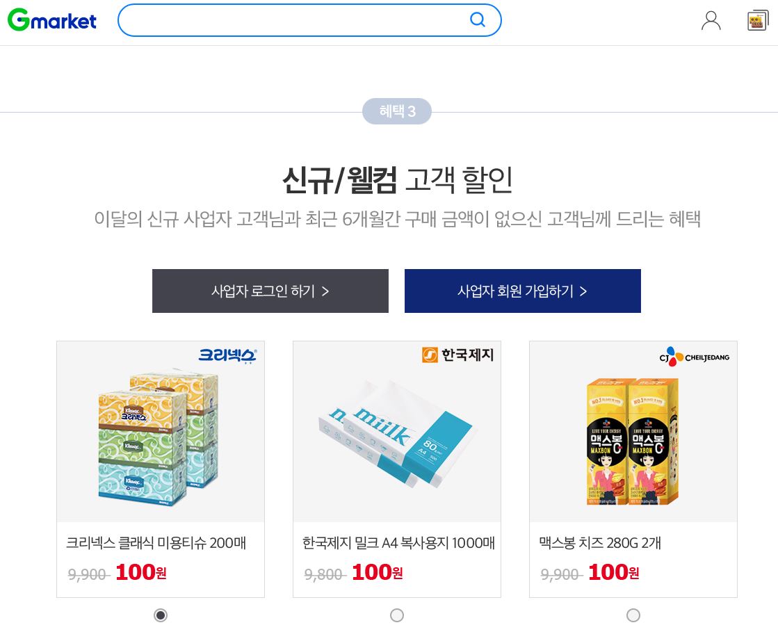 옥션에서 100월딜로 휴지를 산적이 있는데 지마켓도 동일하게 신규회원한테 100월딜을 제공한다.