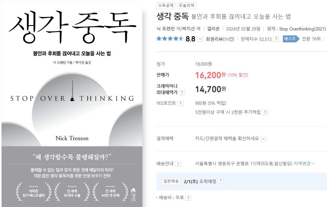 생각중독 ,생각과 걱정이 많은 사람들을 위한 구체적인 해결 방법