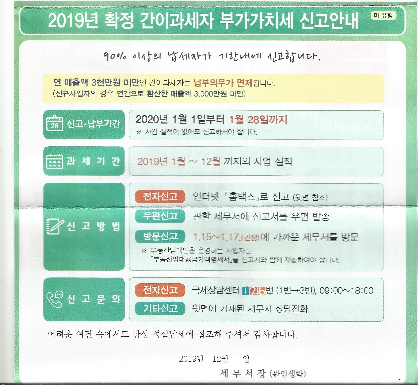 연 매출액 3천만원 미만인 간이과세자는 납부의무가 면제됩니다.