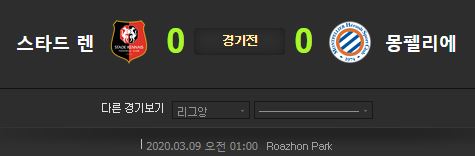 9일 01시 경기 몽펠리에 VS 스타드 렌 원정경기 윤일록 서브