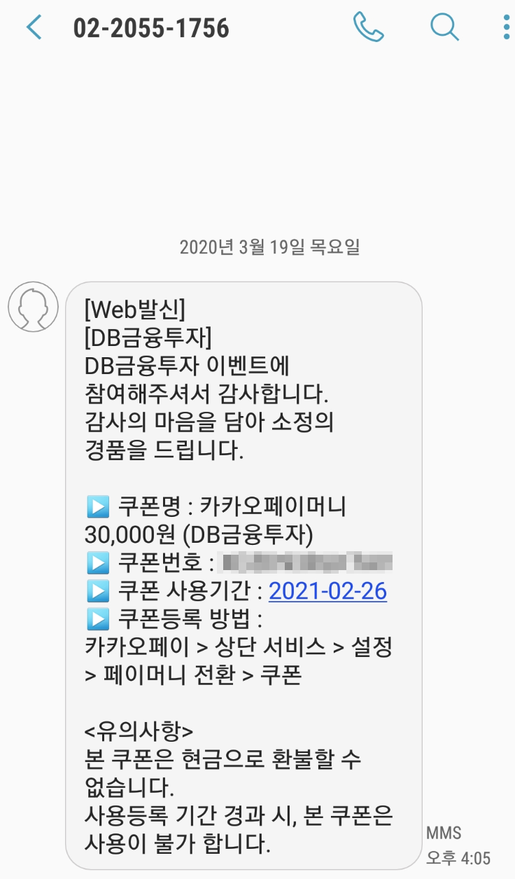 다음날 4시경 문자로 쿠폰이 옵니다.