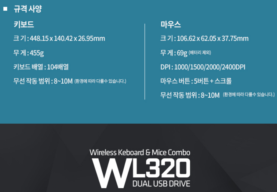 스카이디지탈 NKEYBOARD W570과 고민을 좀 많이 했는데 WL320 무선 키보드 마우스 콤보를 선택한 이유는 마우스 크기때문입니다.