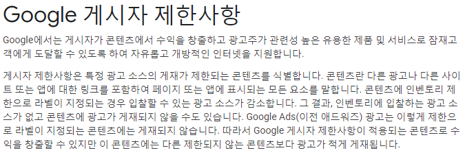 Google Ads(이전 애드워즈) 광고는 이렇게 제한으로 라벨이 지정되는 콘텐츠에는 게재되지 않습니다.