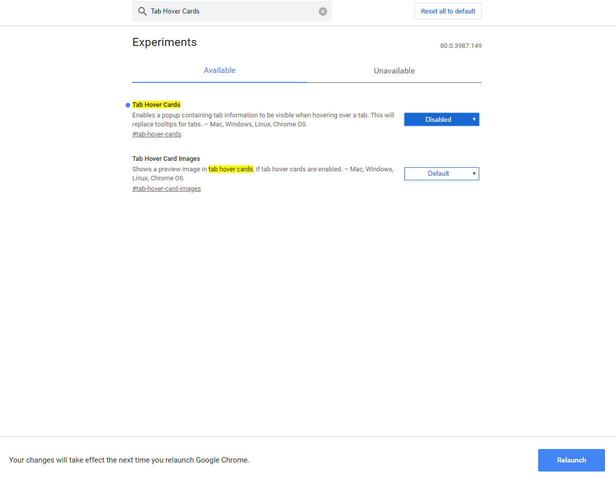 검색창에 Tab Hover Cards 입력하고