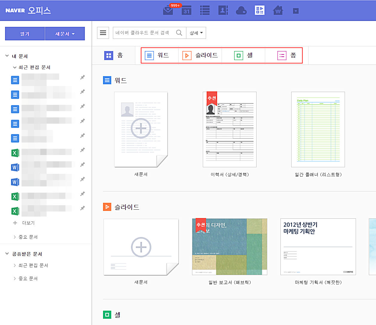 워드뿐 아니라 파워포인트(슬라이드), 엑셀(셀), 각종 폼의 탬플릿, 서식까지 제공하고 있으니 내 컴퓨터에서 프로그램 설치없이 간편하게 사용해보시기 바랍니다.