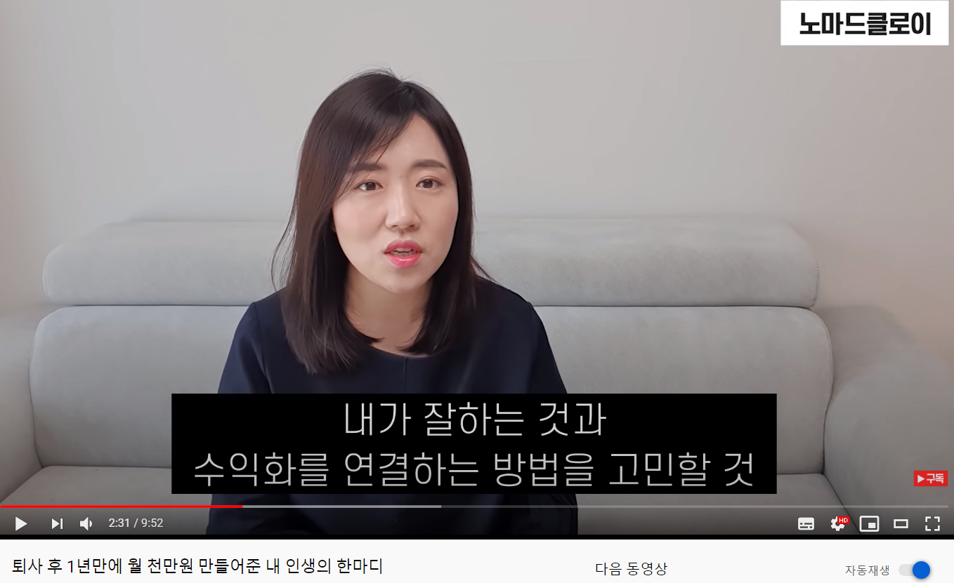 이런 생각을 갖게 된 것은 내 블로그에 소개한 노마드클로이 유튜브채널과 한 티스토리 블로거의 글을 보면서이다.