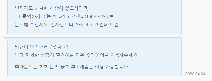 추가 1:1 문의 내역에 어떤 답변이 올지 모르겠습니다.