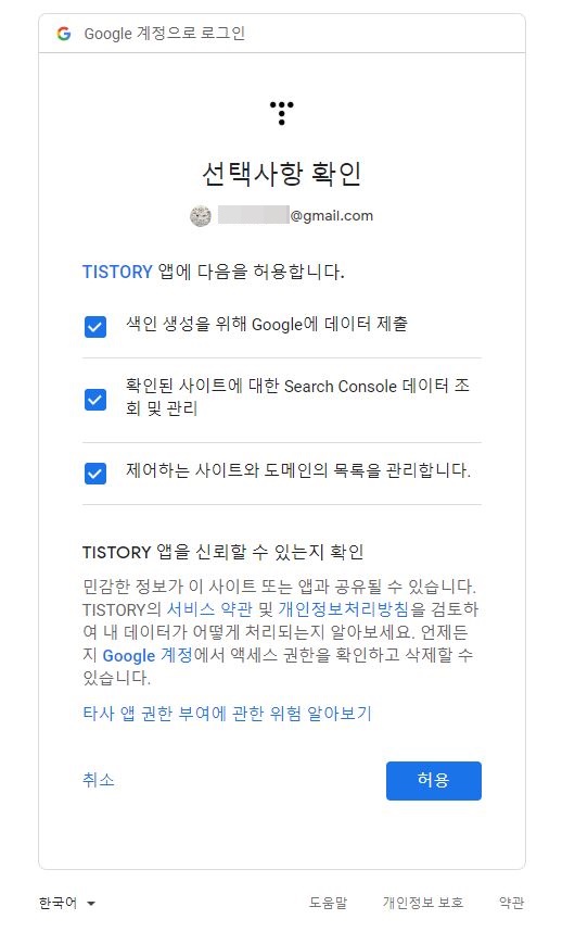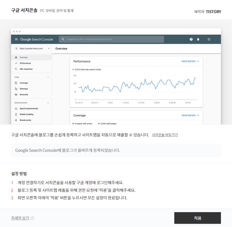 티스토리 플러그인 기능중 구글 서치콘솔 기능이 생겼습니다.