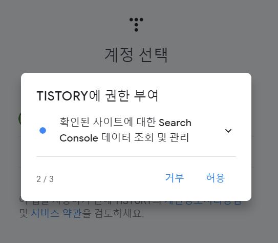 제 다른 블로그에서 계정 연결하기를 눌러보니 위에 메시지가 뜹니다.