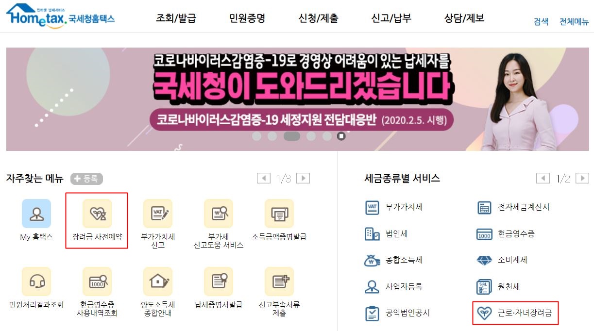 2020년도 근로장려금 자녀장려금 신청방법입니다.