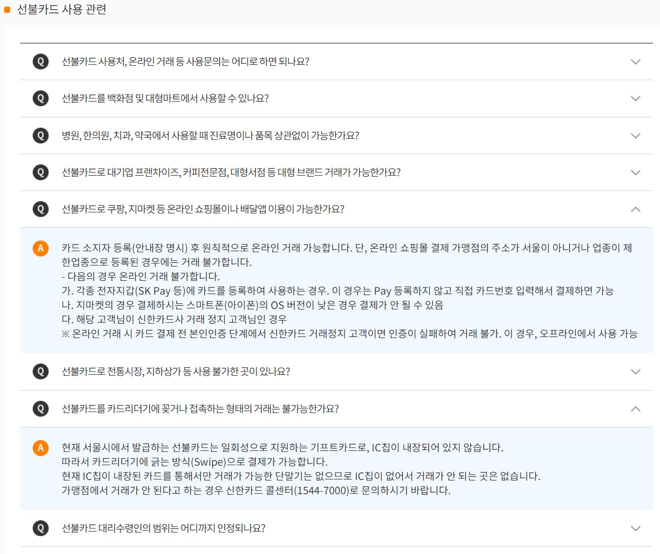선불카드로 쿠팡, 지마켓 등 온라인 쇼핑몰이나 배달앱 이용이 가능한가요?