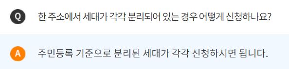 주민등록기준으로 분리된 세대가 각각 신청하는 것이 아닌 건강보험료상 가구 기준입니다.