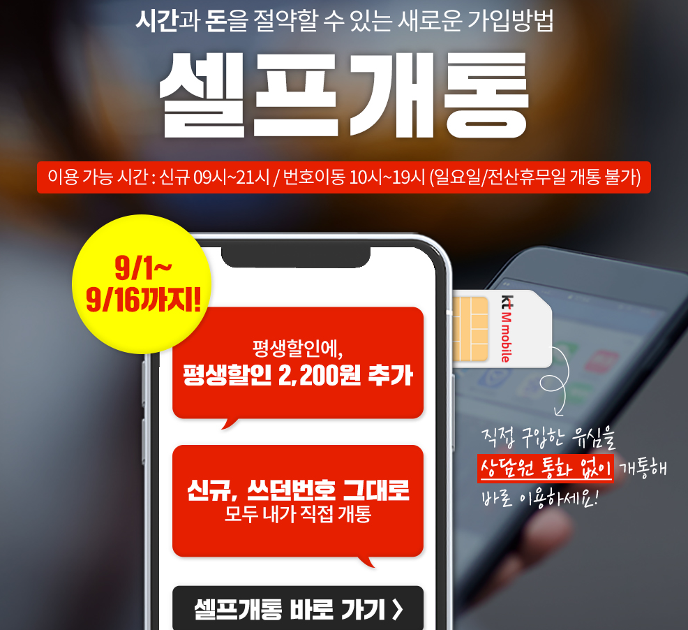 이벤트 요금제도 저렴한데 셀프개통 프로모션 요금제는 2200원 더 저렴하니 최강 가성비이다.
