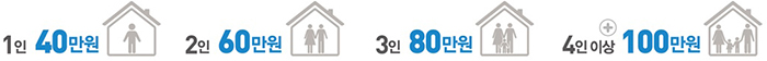 - 세대원 구성에 따라 1인가구 40만원에서 4인가구 100만원까지 지급되며 별도 재난안전기본소득이 지급되는 지자체에 따라 차감 지급