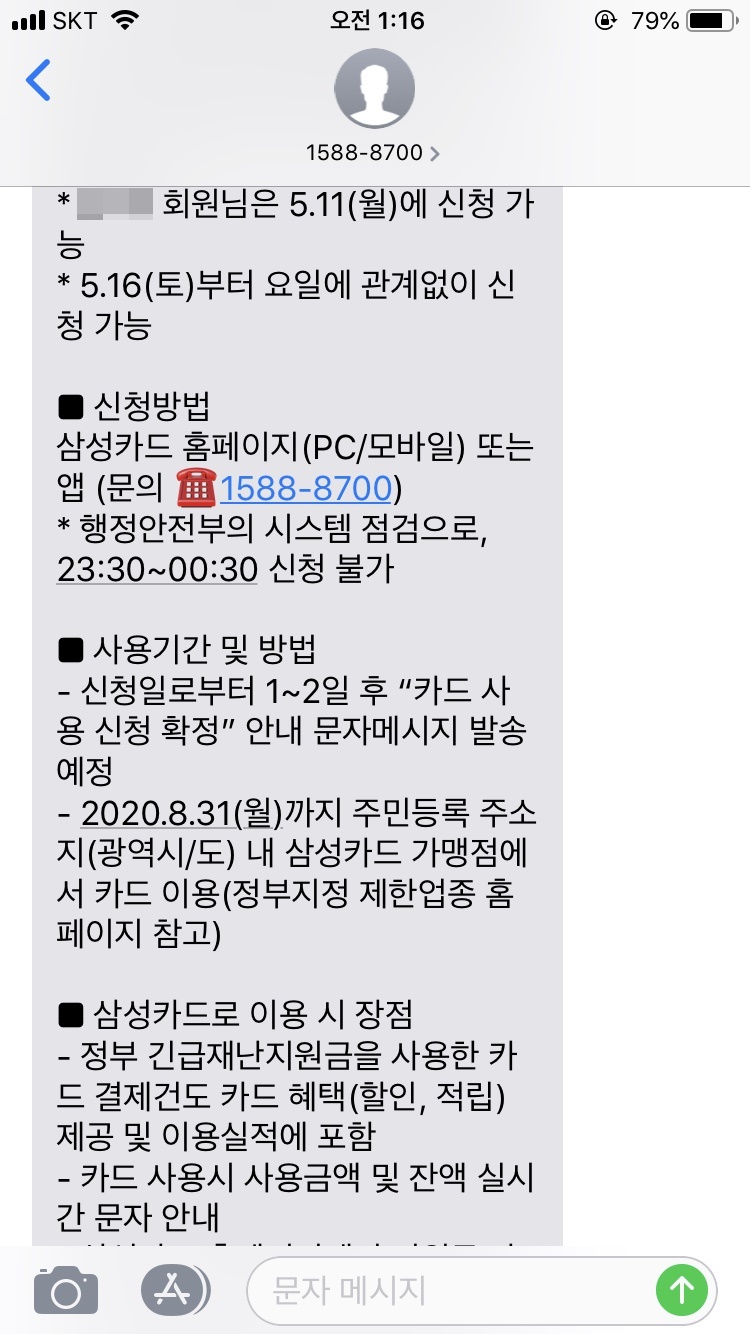 삼성카드 재난지원금 안내 문자